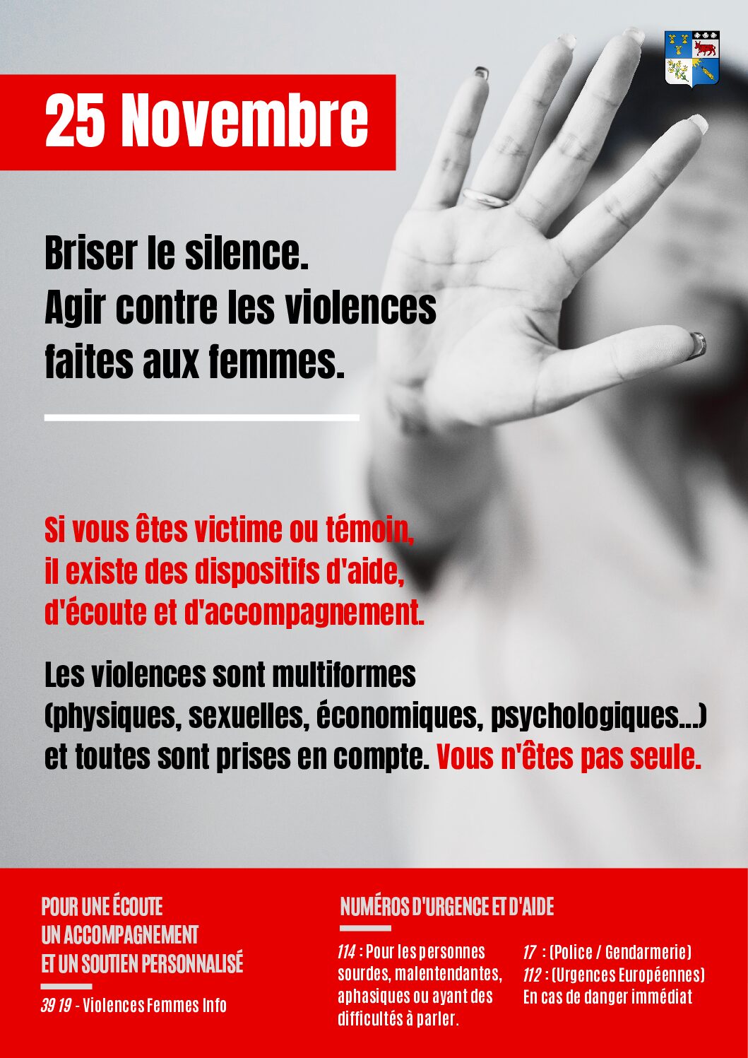 - 39 19 – Violences Femmes Info : Numéro national d’écoute, d’information et d’orientation, anonyme et gratuit, accessible 24h/24 et 7j/7