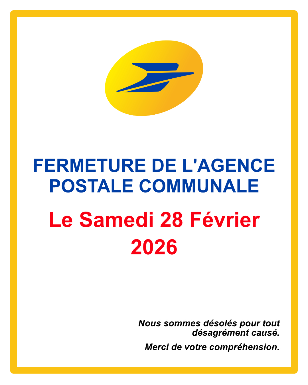 📣 Fermeture exceptionnelle de l’Agence Postale Communale