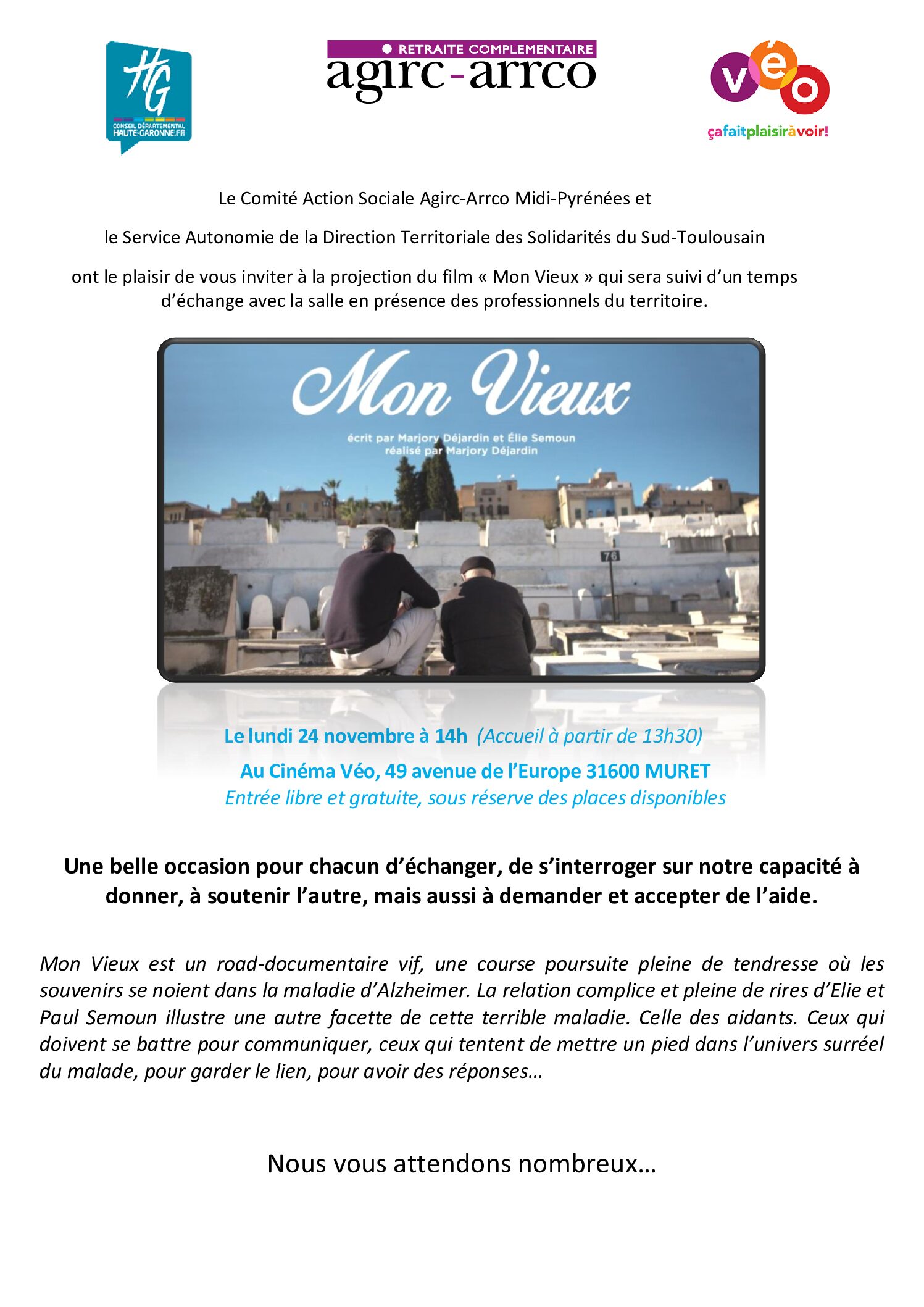 ont le plaisir de vous inviter à la projection du film « Mon Vieux » qui sera suivi d’un temps d’échange avec la salle en présence des professionnels du territoire.