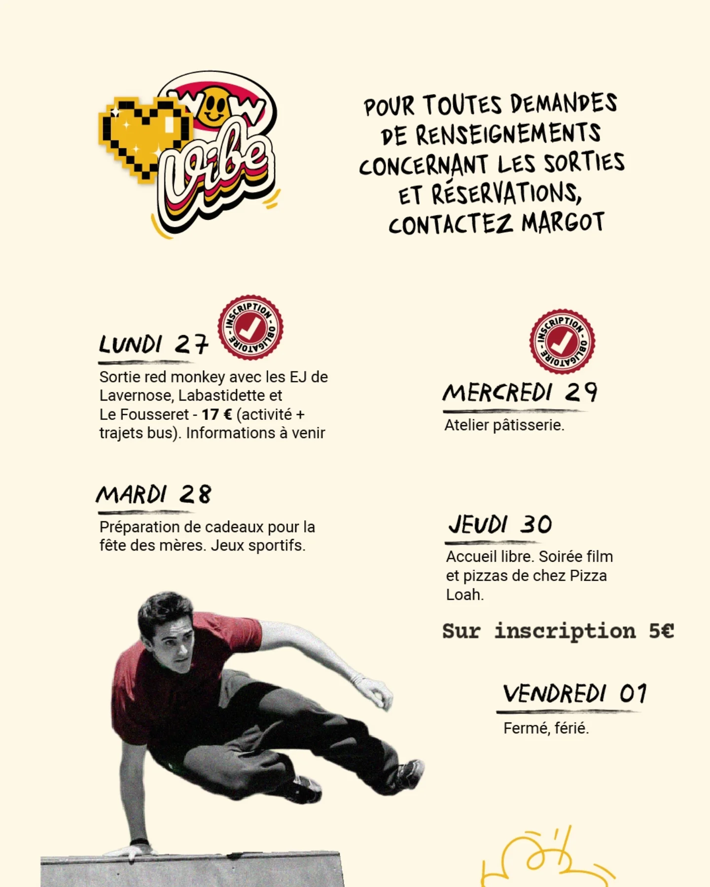 Contact : Pour toute information ou pour vous inscrire, contactez Margot à l’adresse suivante : ej.labastidette@foyersruraux3165.org ou au 06.84.54.10.70