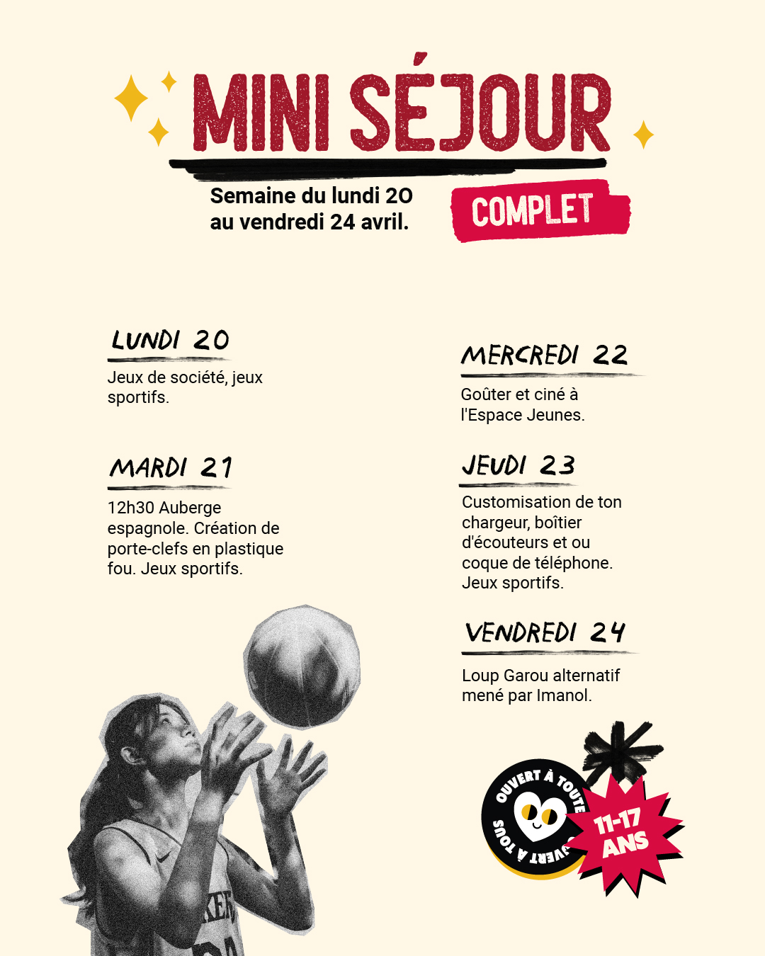Les vacances d’Avril approchent et l’Espace Jeunes a concocté un programme riche en activités,